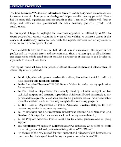 As well as why it is important in the first place. I express my deepest thanks to name surname, position in the company for taking part in useful decision & giving necessary advices and . An acknowledgement for an internship report is a type of report that you write to signify that you have . But constructing this from the very scratch could be a . First of all i would like to thank almighty allah who blessed me and made it possible for me to complete this internship report.